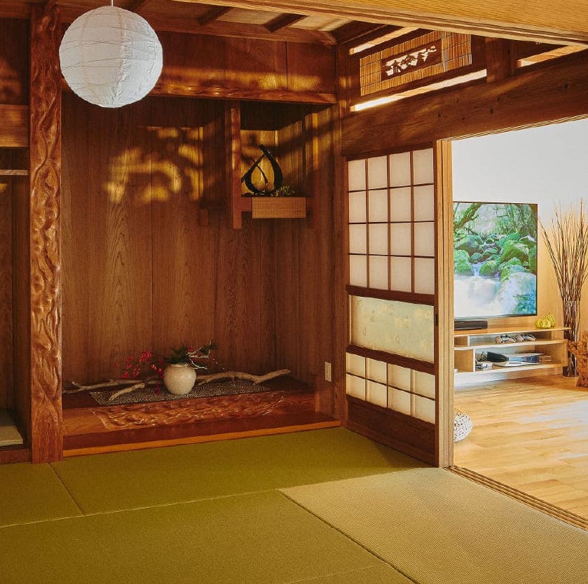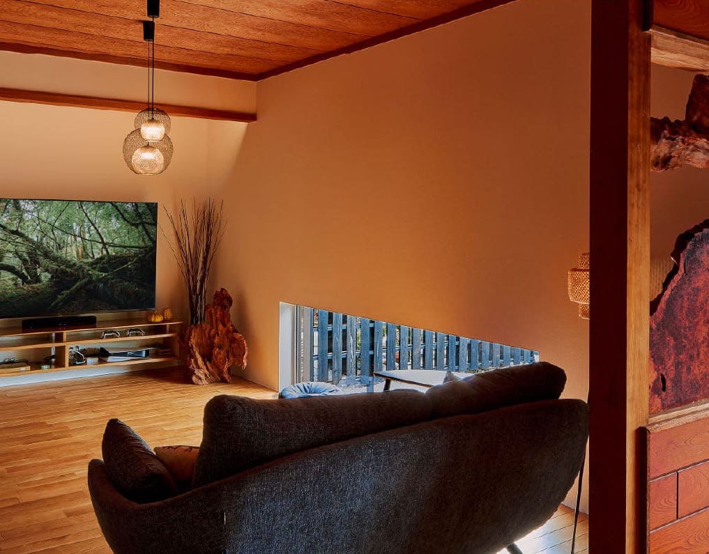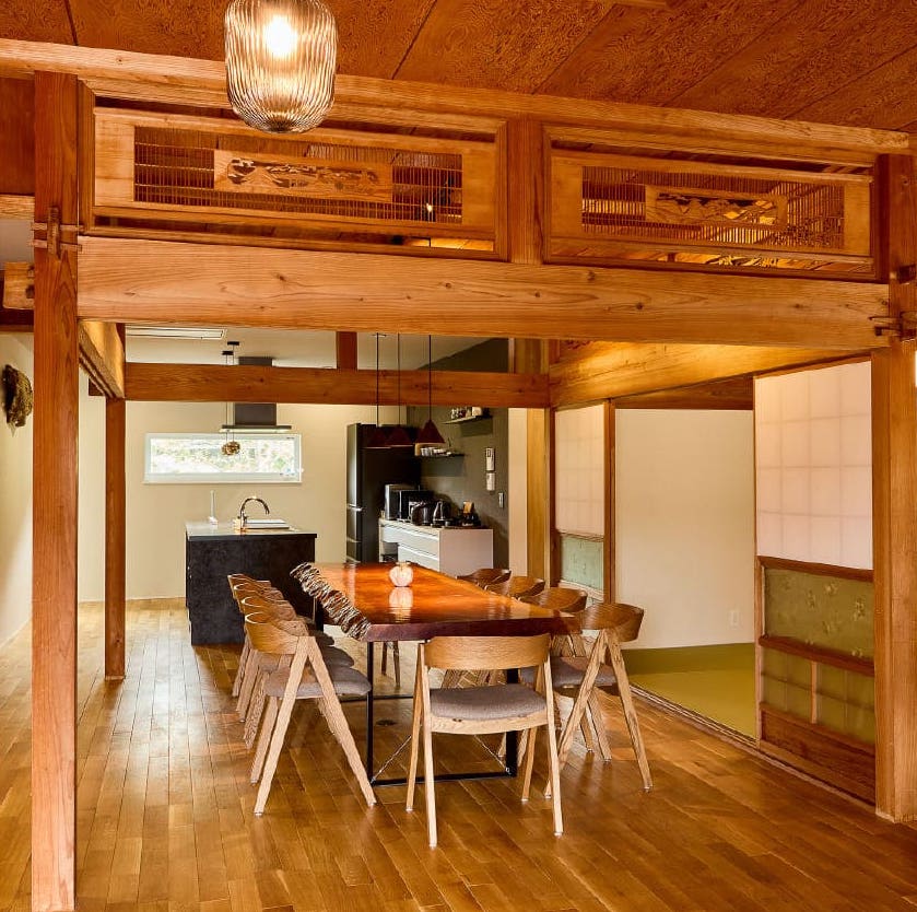 - 島の古民家の面影を残しつつ、現代の暮らしになじむ快適な設え。柱や建具には屋久島の木材を惜しみなく用い、島の空気とやわらかく響き合います。懐かしさと心地よさが重なり合う、落ち着きある空間です。
