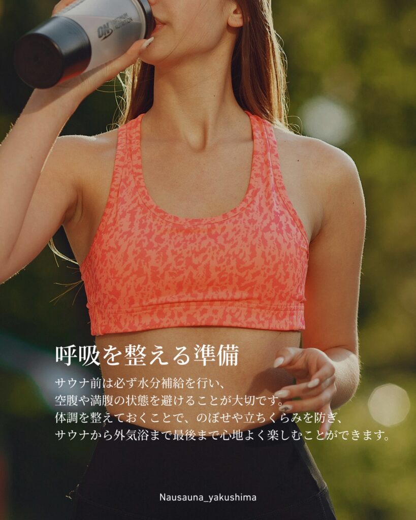 事前の水分補給で体調を整えたら、サウナ中も無理をせず自分の鼓動に耳を傾け、