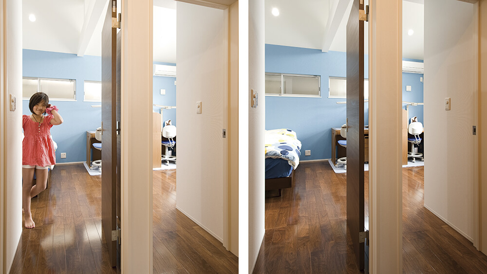 ご提案させて頂いたのはお子様の成長に合わせ、将来は2部屋に分けて使える子供部屋。