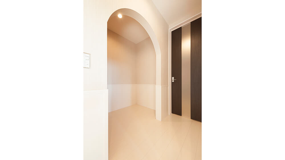 ドッグスペースは、毎日の生活で自然に触れ合えるようにリビングの入口近くに設計、家族の気配を感じられてワンちゃんも安心♪