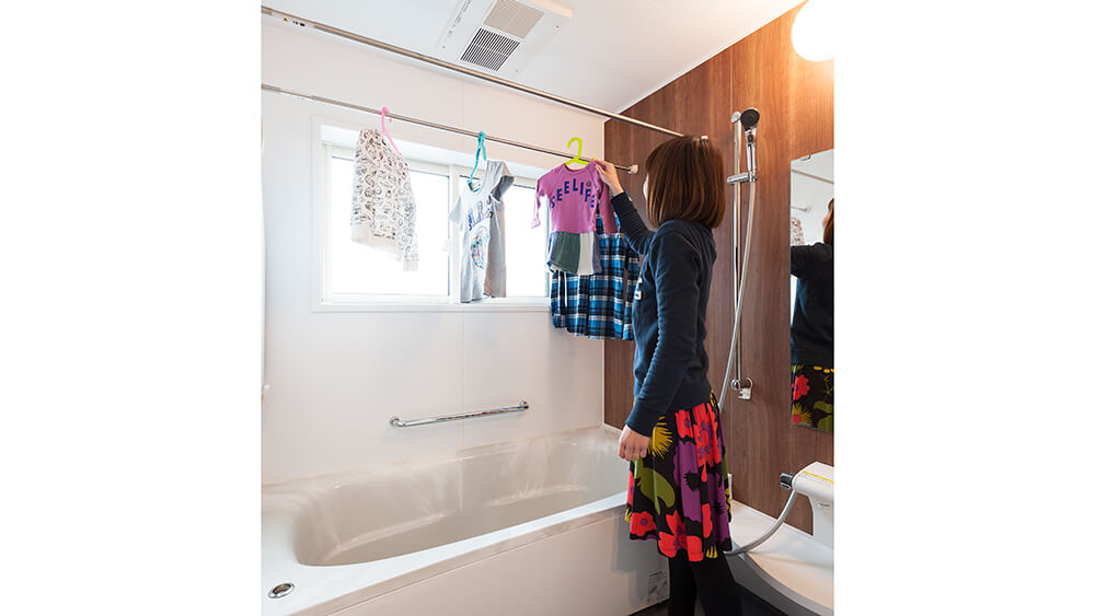 水廻りを全て2階に集めることで、平屋やマンションのようなフラットな動線を実現。
