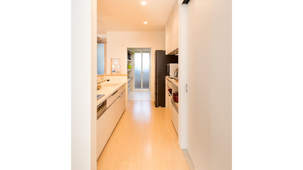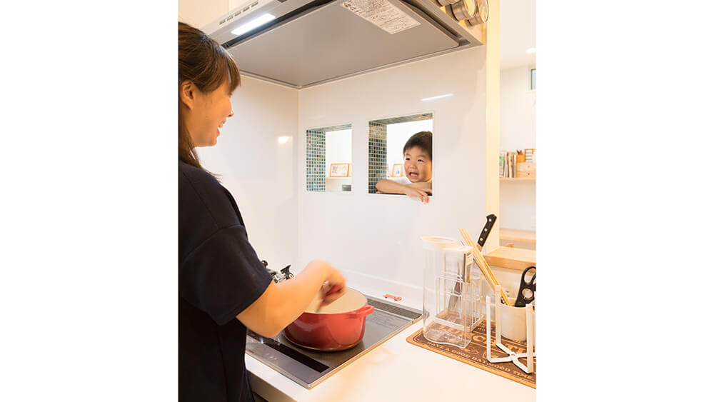 見える安心感でお落ち着て料理が出来き、こども達もママの優しい視線を受けて、安心して遊ぶ事が出来ます。