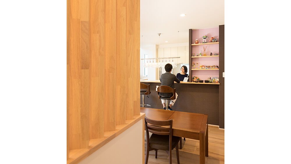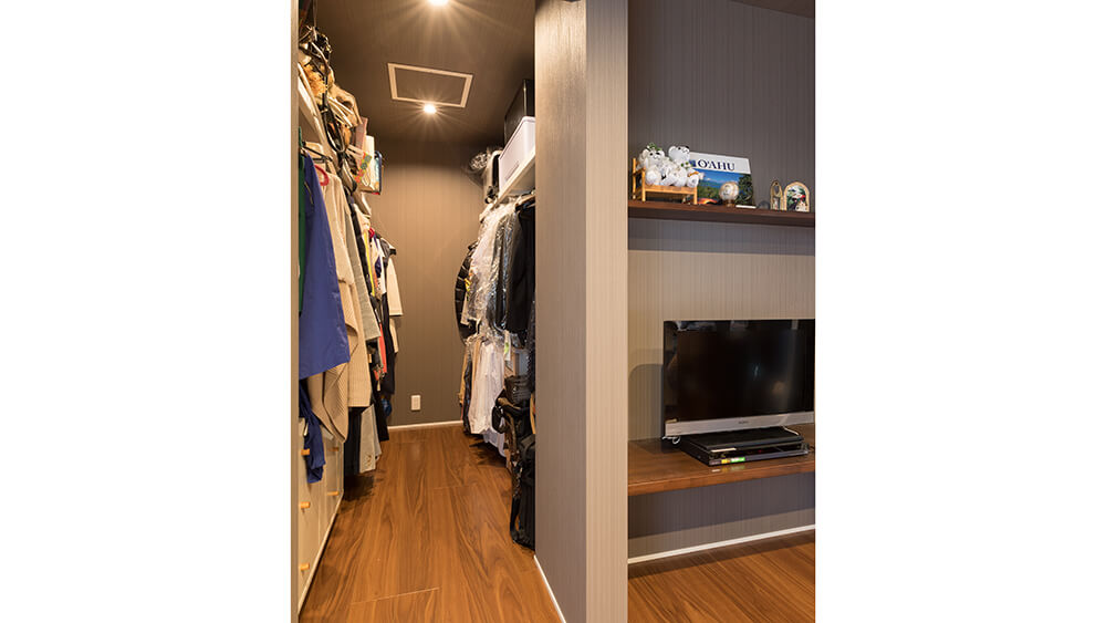 子供部屋をL型に配置することで、廊下など無駄な場所を極力減らし、収納スペースもたっぷり確保しています。