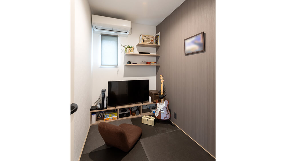 「一人の時間も大切に」との要望にも応え、奥様のプライベートルームを寝室に、ご主人様がゲームや楽器演奏などを楽しむ多目的ルームを設置。