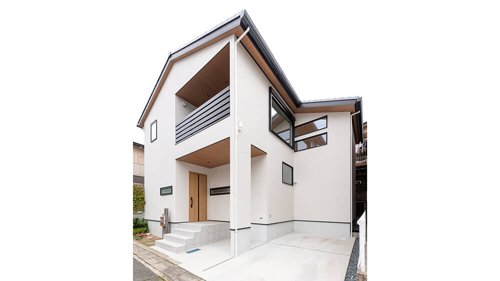 土地探しを依頼した不動産会社の担当者の紹介で同社見学会に足を運んでくださいました。準防火地域に当たるT様邸において延焼ラインにかかる開口部の説明や土地の特性を生かした提案、