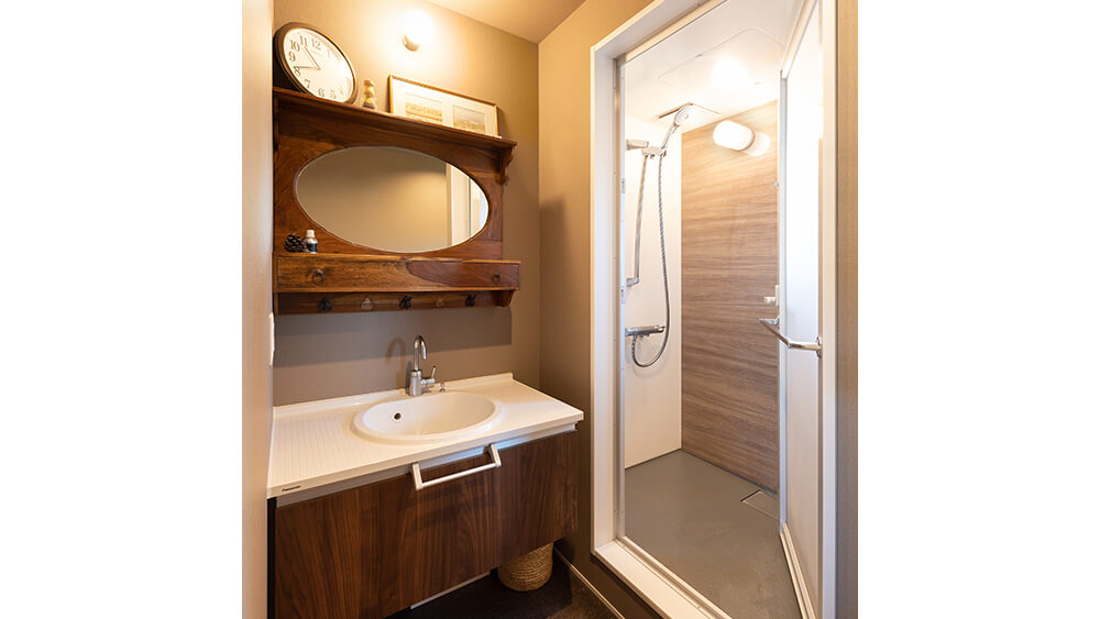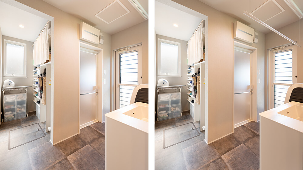 - ・洗面所も、狭いながらすべて効率的に使える棚を作っていただき、娘と妻の日常の服はそこをクローゼットとできたことで日常の動線が非常に楽になったこと